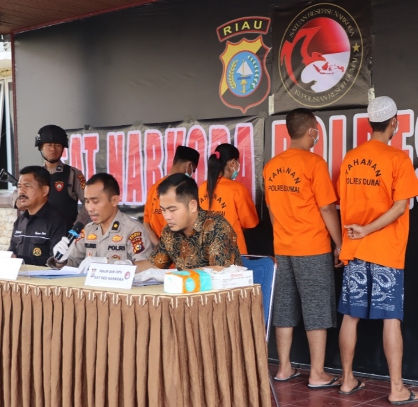 Dalam releasenya, Sat Res Narkoba Polres Dumai menangkap empat orang pelaku pengedar narkotika bukan tanaman jenis sabu.
