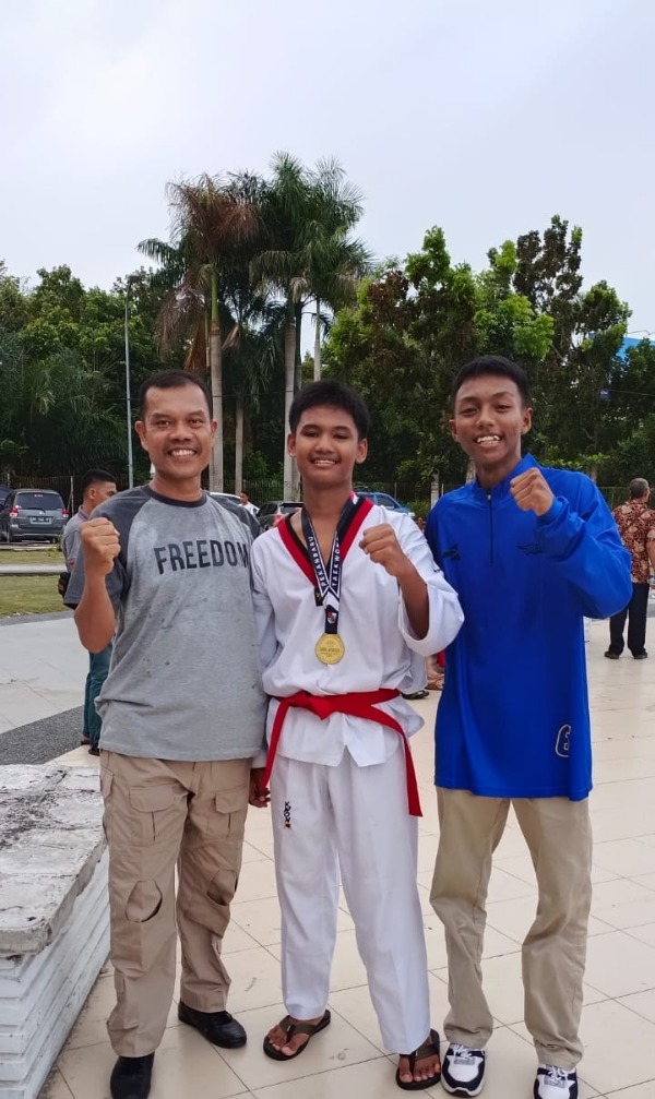 Adapun 1 Emas yang diraih berkat penampilan apik Cadet Prestasi putra dari Tim Flash Kick Tae-Kwondo Kota Dumai asal SMP N Binsus, Vano Derio Ramadhanu.