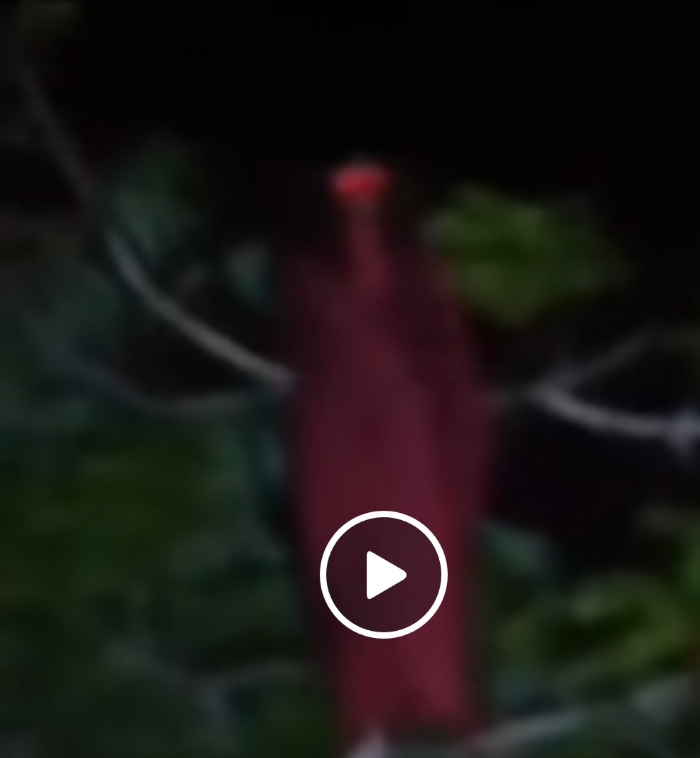 Dalam unggahannya, perekam yang diketahui tetangganya itu tak sengaja merekam penampakan hantu berambut panjang dengan pakaian berwarna merah di atas sebuah pohon.