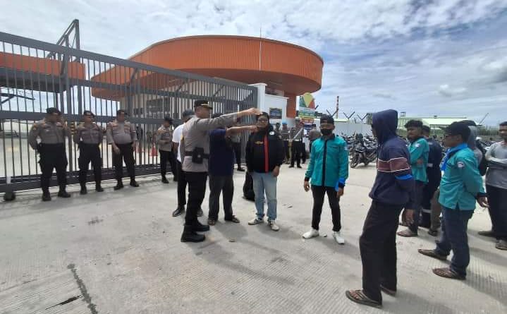 Di dalam video unggahannya, tampak polisi berjaga-jaga di depan Gate perusahaan untuk mengamankan jalannya aksi.