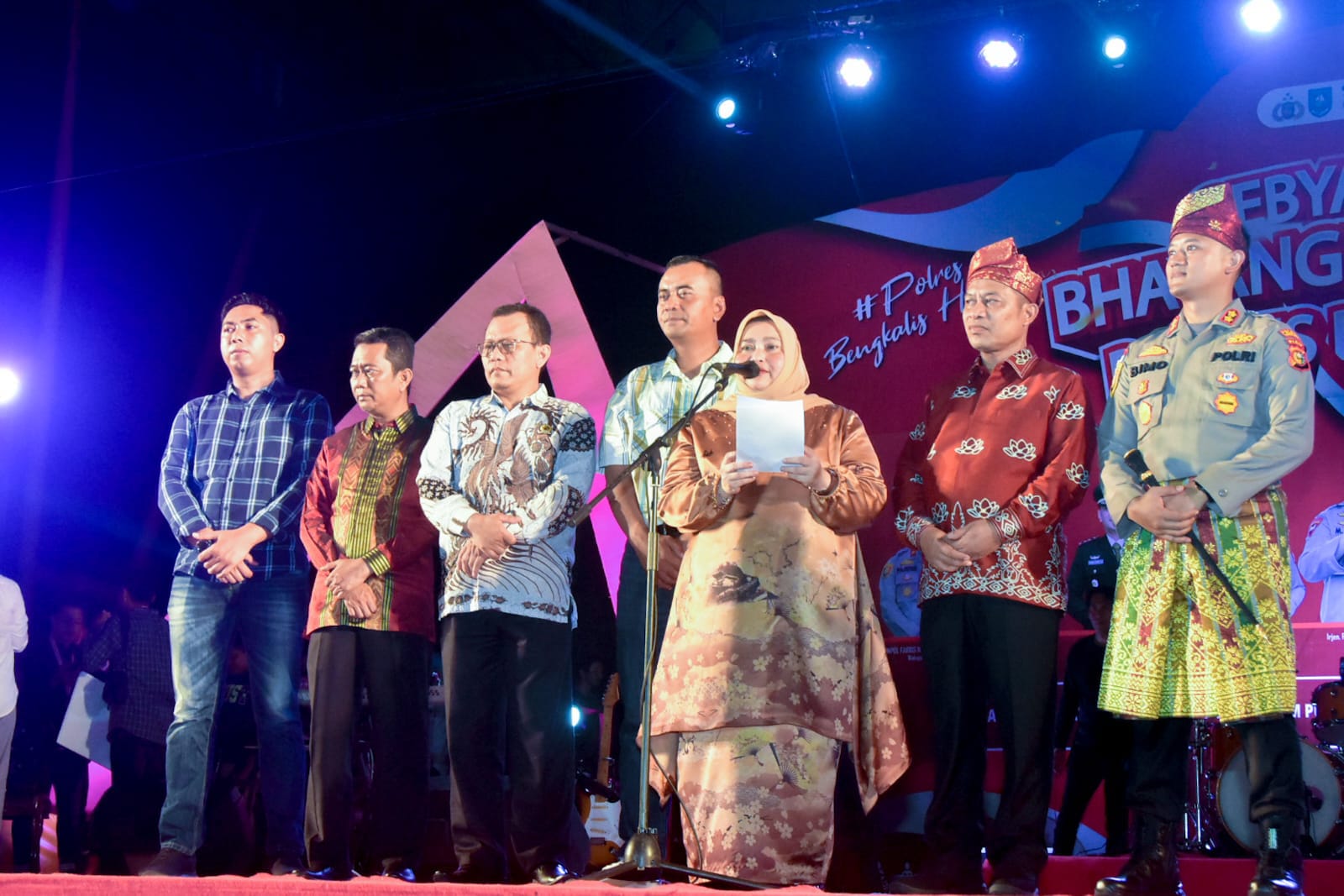 Bupati Bengkalis Kasmarni mengucapkan selamat HUT Bhayangkara ke-77 semoga polres Bengkalis semakin hebat.